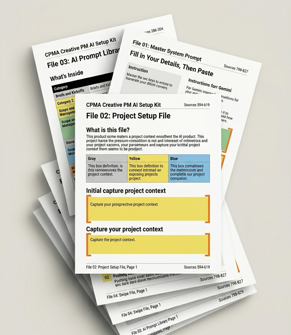 This kit comes from the team behind CPMA's Creative Project Management Certification — built for the real pressures of creative delivery: shifting timelines, layered approvals, stakeholder politics, scope creep, and communication that has to land the first time.